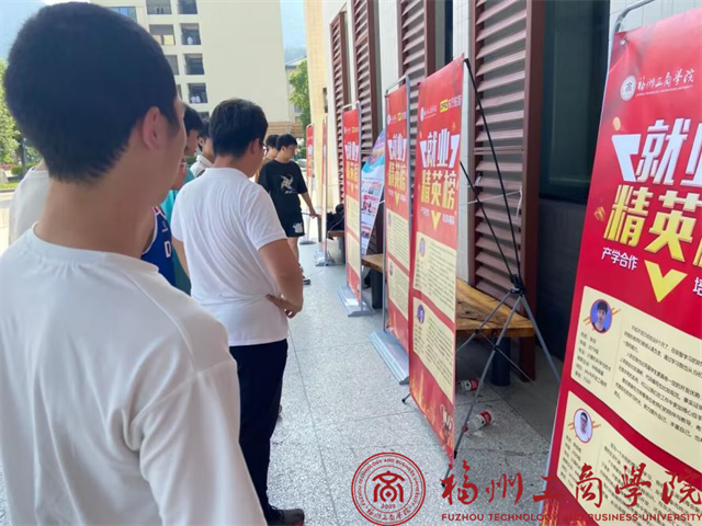 活动现场的海报分为两部分,首先是对福建东方锐智信息科技集团进行介绍,让参观的同学们了解企业的基本信息,其次是在企业就业的优秀毕业生的事迹简介,使得同学们能够更加具体的了解就业形势。本次校企合作就业精英风采展面向全校师生进行为期一天的宣传展示,活动现场也有相关的老师和活动人员针对学生提出的问题进行解答,以此促进beat365vip官网登录入口学生树立科学正确的职业发展观,缩短职业适应期,减少职业试错过程。