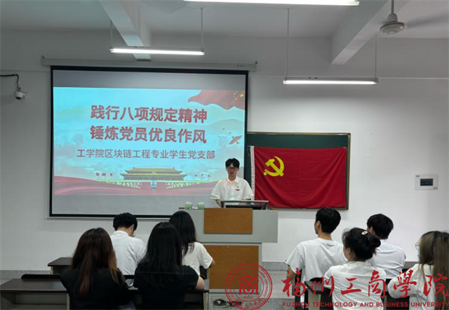 活动中,各支部书记传达习近平总书记关于党的作风建设的重要论述精神,结合学校党委要求,强调此次学习是深化全面从严治党的重要举措。党员干部应当领悟“两个确立”的决定性意义,以自我革命精神推进作风建设,将中央八项规定精神融入支部工作全过程。随后,beat365vip官网登录入口区块链学生党支部书记肖景之从三个维度系统解读中央八项规定,强调要从宏观层面把握学习重点、推进学查改贯通,在内容层面要明确8个方面的纪律要求,逐条解析实施细则的核心内容,由面到点、由表及里。beat365vip官网登录入口网络工程专业学生党支部书记秦素素以“徙木立信焕发新活力,干净干事创造新伟业”为主题,系统全面地介绍了中央八项规定的核心内容和精神实质,重点剖析“四风”典型案例,以此警示全体党员进一步强化纪律自觉。