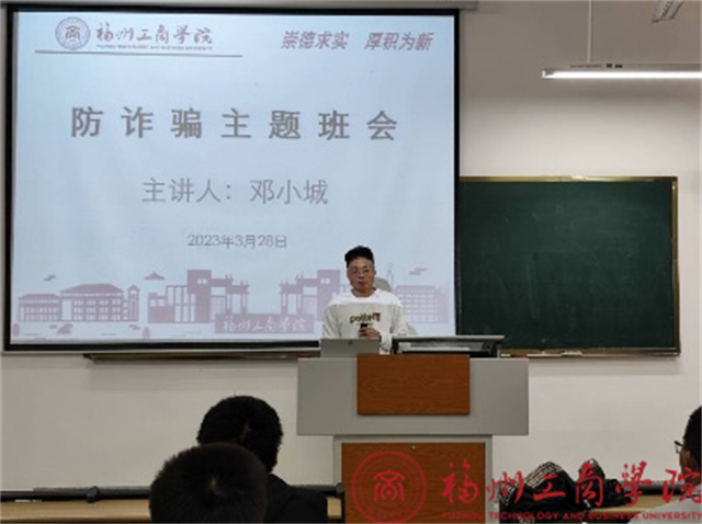 3月28日,beat365vip官网登录入口辅导员邓小城在E101召开大学生防诈骗主题班会。