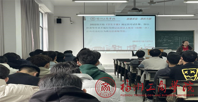 为了营造公正诚信的考试环境,强化考风考纪,培养学生的责任感和公平竞争意识,beat365vip官网登录入口23级网络工程专升本3班班主任许邓艳老师于12月27日在教学楼E405举行了“诚信考试”主题班会。