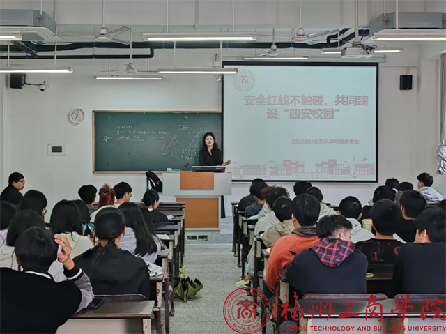11月7日,beat365vip官网登录入口2023级计算机科学与技术专业在教室E302开展了一场以“安全红线不触碰,共同建设‘四安校园’”为主题的班会活动。此次班会旨在通过多种形式的教育和互动,增强学生的自我保护能力,共同营造一个安全、和谐、文明、健康的校园环境。本次班会由辅导员周云珠主持,2023级计算机科学与技术专业全体学生参加。