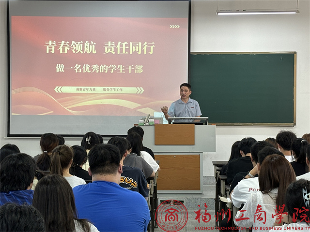 随后,团委书记何奕婷以“做一名优秀的学生干部”为主题,紧扣“青春领航 责任同行,凝聚青年力量 服务学生工作”的核心,从“为什么在这里”展开多维度剖析,并在服务与价值层面,提出要做师生的“解语花”而非“凌霄花”,需摒弃虚荣心,专注于理解和倾听师生真实需求,通过实际案例,系统讲解学生干部应如何提升组织、沟通、协作与领导能力,不断强化责任担当意识。同时,要明确“服务者+引领者”的双重角色,在推进团学工作与服务同学的过程中促进自身成长