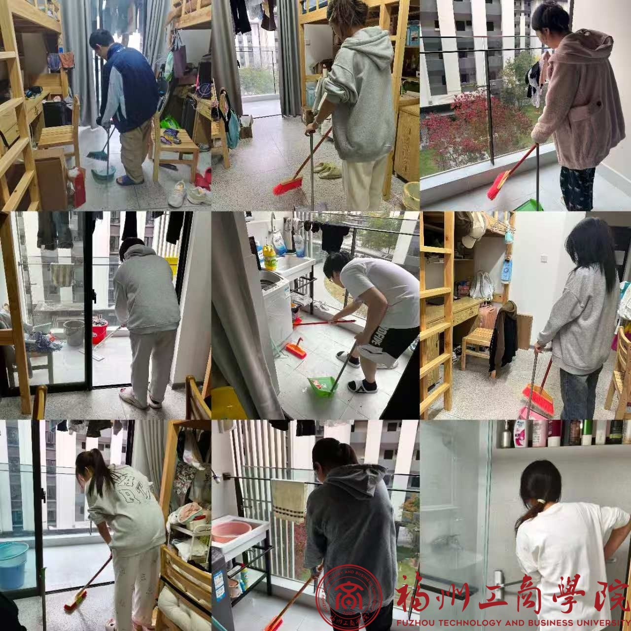 活动流程规范清晰、有序推进。12:00至15:00为宿舍内部集中清洁时段,同学们分工协作、迅速投入,展现出良好的集体风貌。大家对地面污渍、桌面杂物、床底墙角等卫生死角进行重点清理,有人擦拭门窗、整理物品,有人清扫地面、清运垃圾,共同打造出窗明几净、整齐有序的居住空间。15:00至17:00,由班级劳动委员和班长组成的检查评分小组,依据卫生清洁标准,对各宿舍逐一验收。过程中,小组认真记录清洁情况,并标注各宿舍的特色与亮点,确保检查公平、公正、公开。
