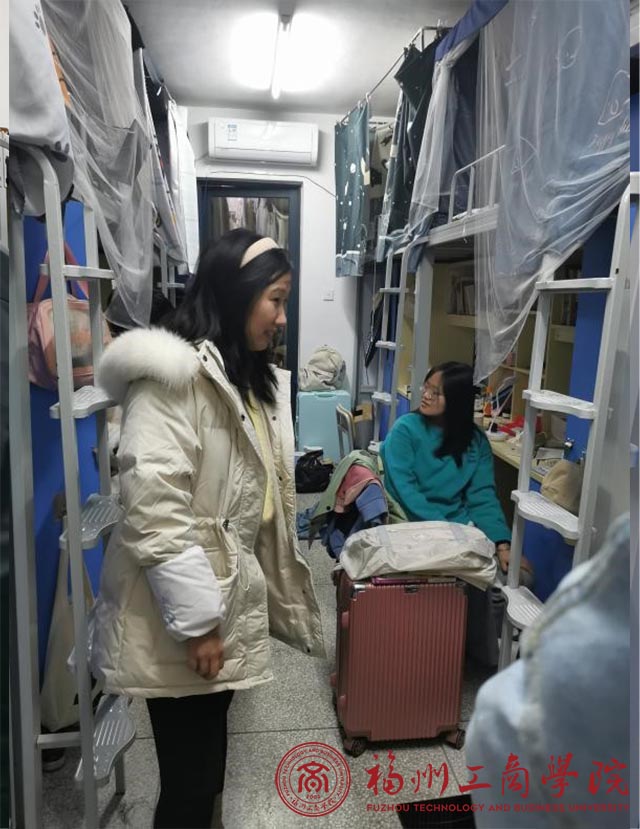 为了更好地了解2021级电子商务1班学生们的学习生活状况和复习状态,12月28日晚8:00,辅导员曾良辉和班主任黎文娟去走访2021级电子商务班的4间男生宿舍和4间女生宿舍。