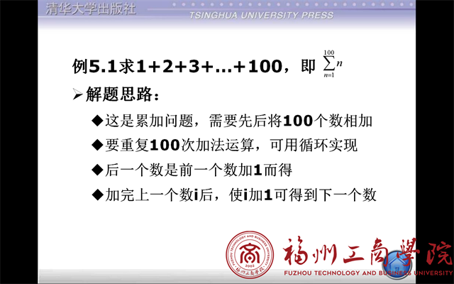 模块三:“程序基本结构”讲到循环结构时,学生需要掌握循环三种语句掌握 while、do…while 和 for 语句异同及其执行流程。求解实际问题案例,编写程序实现求 100 以内自然数之和。用三种循环语句求解同一个问题。培养学生由浅入深的思维方式和反复推敲代码的习惯。通过应用循环语句解决的实际问题,培养学生的自信心及勇于自我表现的良好素质。