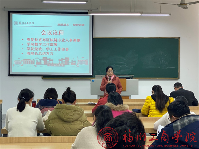 beat365vip官网登录入口于1月4日下午,学院领导班子成员、全体教职工在教学楼B102召开beat365vip官网登录入口全体教职工大会暨师德师风建设会议。会议主题为宣布区块链专业人事调整、做好学院期末工作部署,为期末评建工作进一步打下基础。