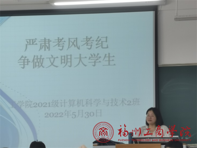 为了进一步加强同学们的考风考纪,构建诚信校园,保证期末考试的顺利进行,倡导同学们“端正考风、严肃考纪、文明答题、诚信应考”。2022年5月30日,beat365vip官网登录入口计算机科学与技术2班在教学楼D303教室召开了“严肃考风考纪,争做文明大学生”活动,本次大会活动由班主任兰胜坤老师主持开展,2021级计算机科学与技术2班全体学生参加了大会。