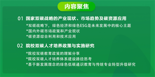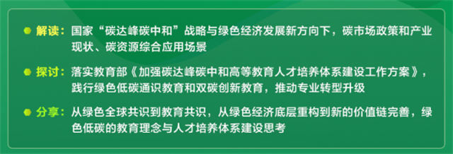 本次论坛的从国家碳战略、绿色经济看院校双碳人才培养高校碳创新围绕国家双碳战略与绿色经济,特邀拥有15年跨国/上市能源经验产业专家,聚焦分享双碳产业现状、市场趋势及碳资源应用。