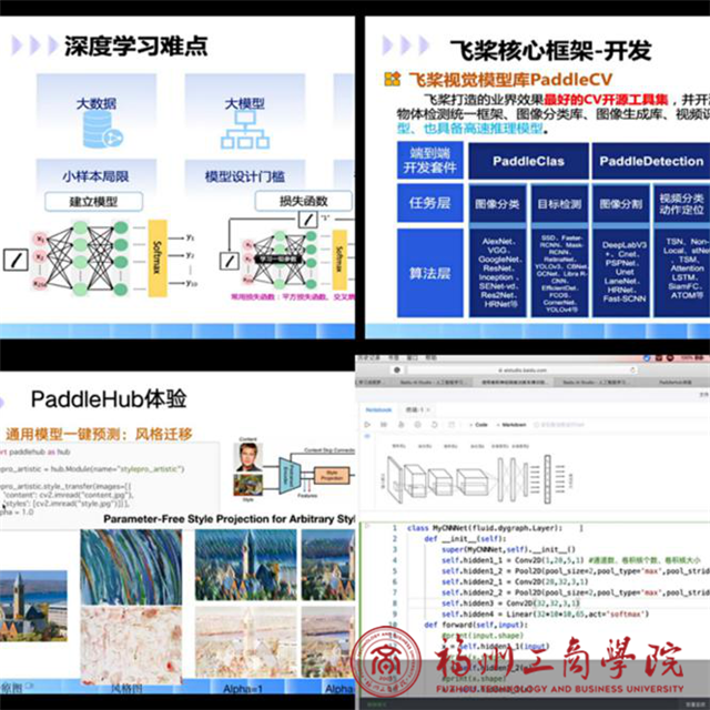 由于疫情的原因,线上涌现出很多专业前沿知识相关的研讨会、培训教学等,自今年下半年以来,本人在备课之余了解了人工智能的多个领域知识,最终对深度学习产生了浓厚兴趣。本人认真研读了《深度学习之美》一书,获益良多,其次又参加了百度开展的深度学习线上培训课程,图1为课程内容部分截图。