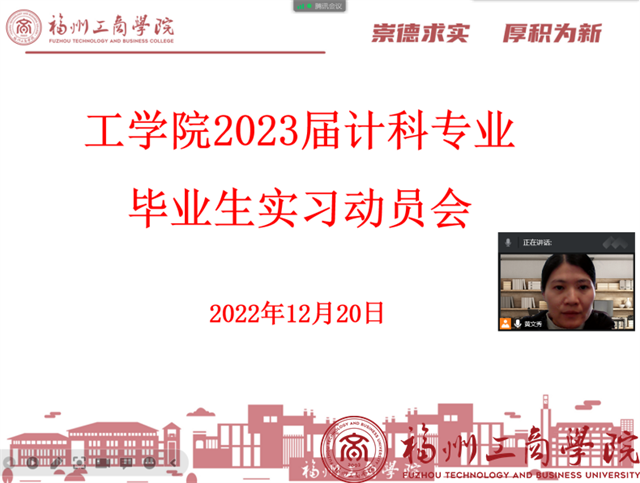 为进一步做好毕业生实习工作,提升学生实践技能水平,确保毕业实习工作顺利开展,计算机科学与技术教研室于12月20日召开2023届计科专业毕业生线上实习动员会。