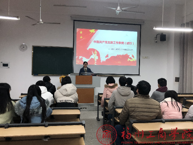 支部书记黄文秀同志从《中国共产党支部工作条例(试行)》的基本概况、组织设置、基本任务、组织生活、党支部委员会建设、领导和保障等方面进行了详细的解读。