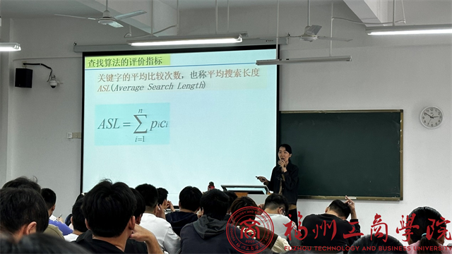 施键兰老师用饱满的精神和清楚的条理为我院师生呈现了一堂有关“数据结构查找”的课程。课堂之上,施键兰老师十分注重培养学生运用知识的能力,通过生活中的相关案例展现数据查找的不同方法,让学生进行思考作答,能引导学生对问题进行细致全面的分析。精美的课件和对时间的精准把握,赢得了师生的普遍称赞。