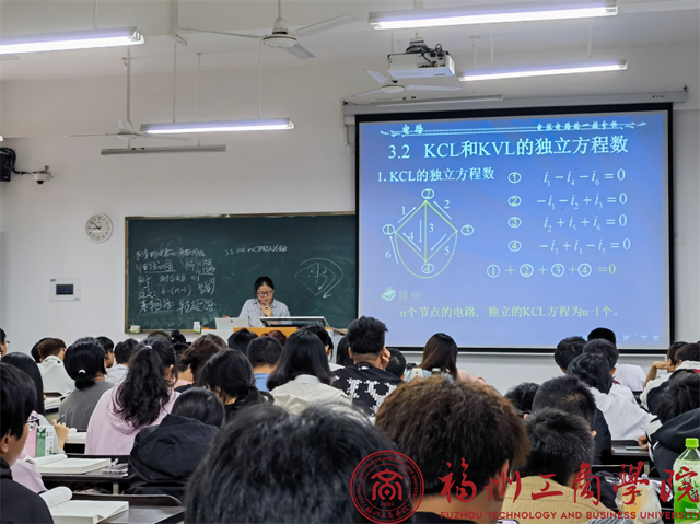 此次公开课中,电子信息工程教研室的兰胜坤老师讲授了第三章电阻电路的一般分析,她首先用《哥尼斯堡的七桥问题》的趣味故事向同学们讲述了图论的起源,同时也向学生传达要透过现象抓住问题的实质、要用数学的思维、抽象的思维来解决编程问题的学习思路。兰老师在讲课过程中善于通过例题讲解来帮助学生巩固学习的知识点,同时激励学生主动回答问题,对学生的回答给予鼓励,增加学生的学习兴趣。总体而言此次公开课课堂气氛和谐,师生互动良好。