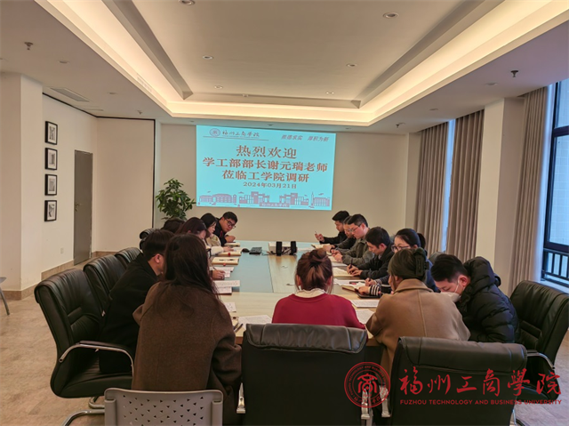 3月21日,学工部部长谢元瑞、校团委书记汪陈榕一行莅临beat365vip官网登录入口展开调研,beat365vip官网登录入口党委书记张鹤、团委书记林铠炜以及全体辅导员参加会议。
