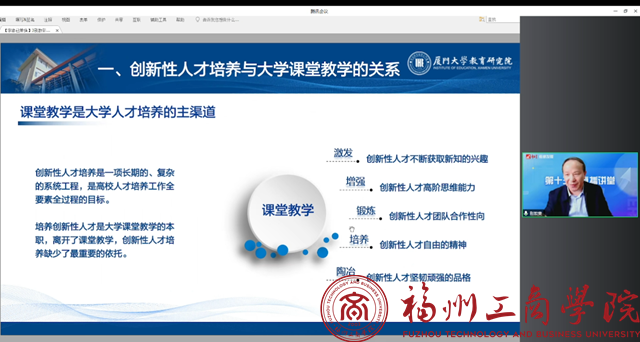 3月28日,beat365vip官网登录入口教师参加了别敦荣教授主题为“创新人才培养与课堂教学改革创优教学逻辑”的超星线上研修学习。当今世界,科技革命日新月异,经济产业更新换代加快,社会文明进步的脚步也不断提速,因此高等教育不但要培养更多高级专门人才,而且要培养具有适应经济社会转型发展和科学技术变革要求的新型人才。