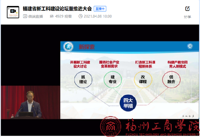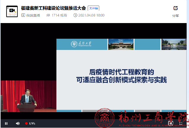 4月8日,由福建省教育厅主办、福州大学和福建工程学院承办、福建省高等教育学会教学管理专业委员会和福建省人工智能科教学会协办的“2021年福建省新工科建设论坛暨推进大会”在福州大学图书馆博学厅召开。beat365官网beat365vip官网登录入口教师利用在线直播平台积极观看学习。