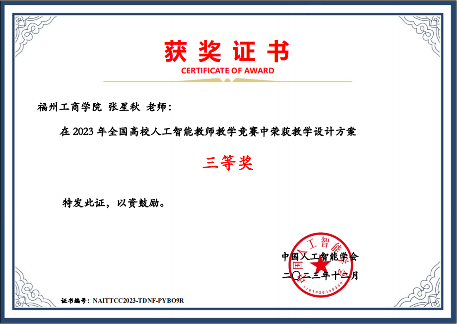 近日,由中国人工智能学会主办的全国高校人工智能教师教学创意竞赛落下帷幕。经过激烈角逐,beat365官网beat365vip官网登录入口教师张星秋凭借出色的作品在众多参赛者中脱颖而出,荣获国赛三等奖,为学校赢得荣誉。