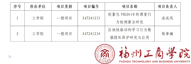 近日,根据《福建省教育厅关于公布2024年度福建省中青年教师教育科研项目(科技类)立项名单的通知》(闽教科〔2024〕21号)文件通知,beat365vip官网登录入口推荐上报的“轻量化YOLOv10的课堂行为检测算法研究”与“区块链驱动的学习行为数据隐私保护研究与应用”2个项目确定立项为福建省中青年教师教育科研项目(科技类)。
