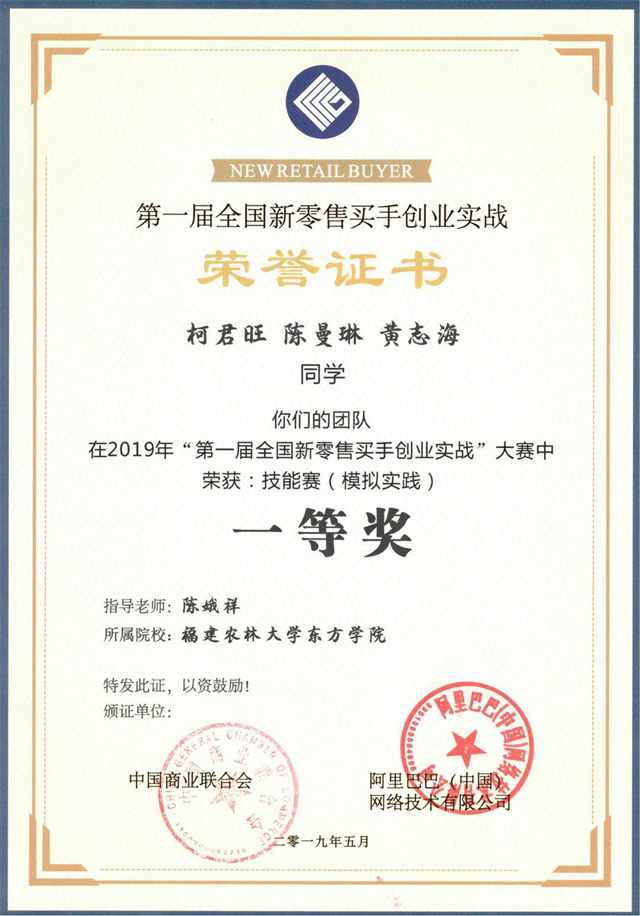 第一届全国新零售买手创业实战技能赛等同学团体一等奖