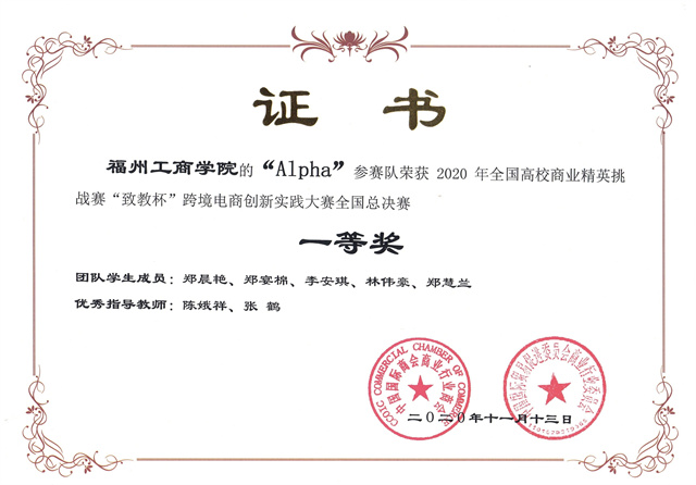 2020年全国高校商业精英挑战赛“致教杯”跨境电商创新实全国总决赛团践大赛郑晨艳等同学团体一等奖