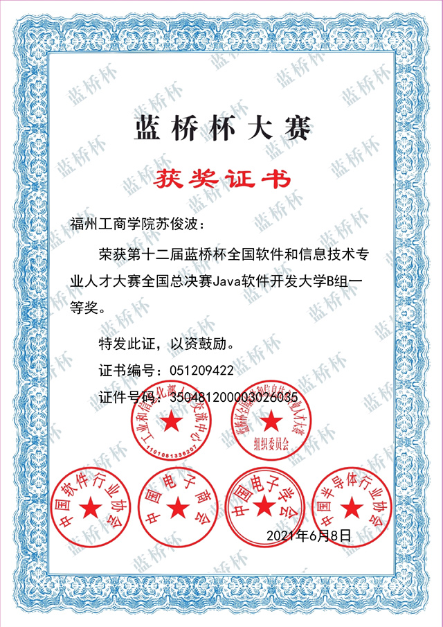 十二届蓝桥杯全国软件和信息技术专业人才大赛(全国赛)苏俊波个人一等奖