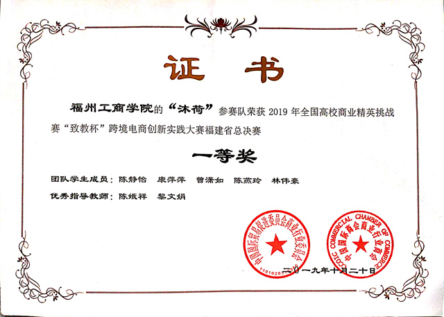 2019年全国高校商业精英挑战赛“致教杯”跨境电商创新实践大赛福建省总决赛康萍萍等同学团体一等奖