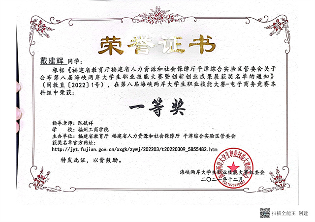 第八届海峡两岸大学生职业技能大赛电商技能竞赛本科组一等奖