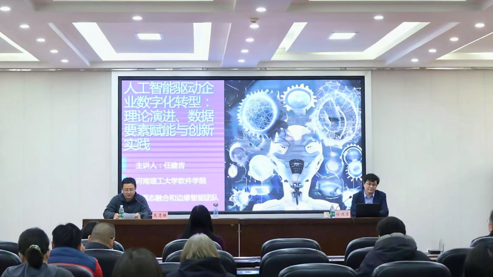3月11日,应学院邀请,软件学院副教授、多模态融合和边缘智能团队带头人任建吉在经管楼1105会议室作题为《人工智能驱动企业数字化转型:理论演进、数据要素赋能与创新实践》的专题报告。会议由学院副院长范志强主持,全体教师参会学习。