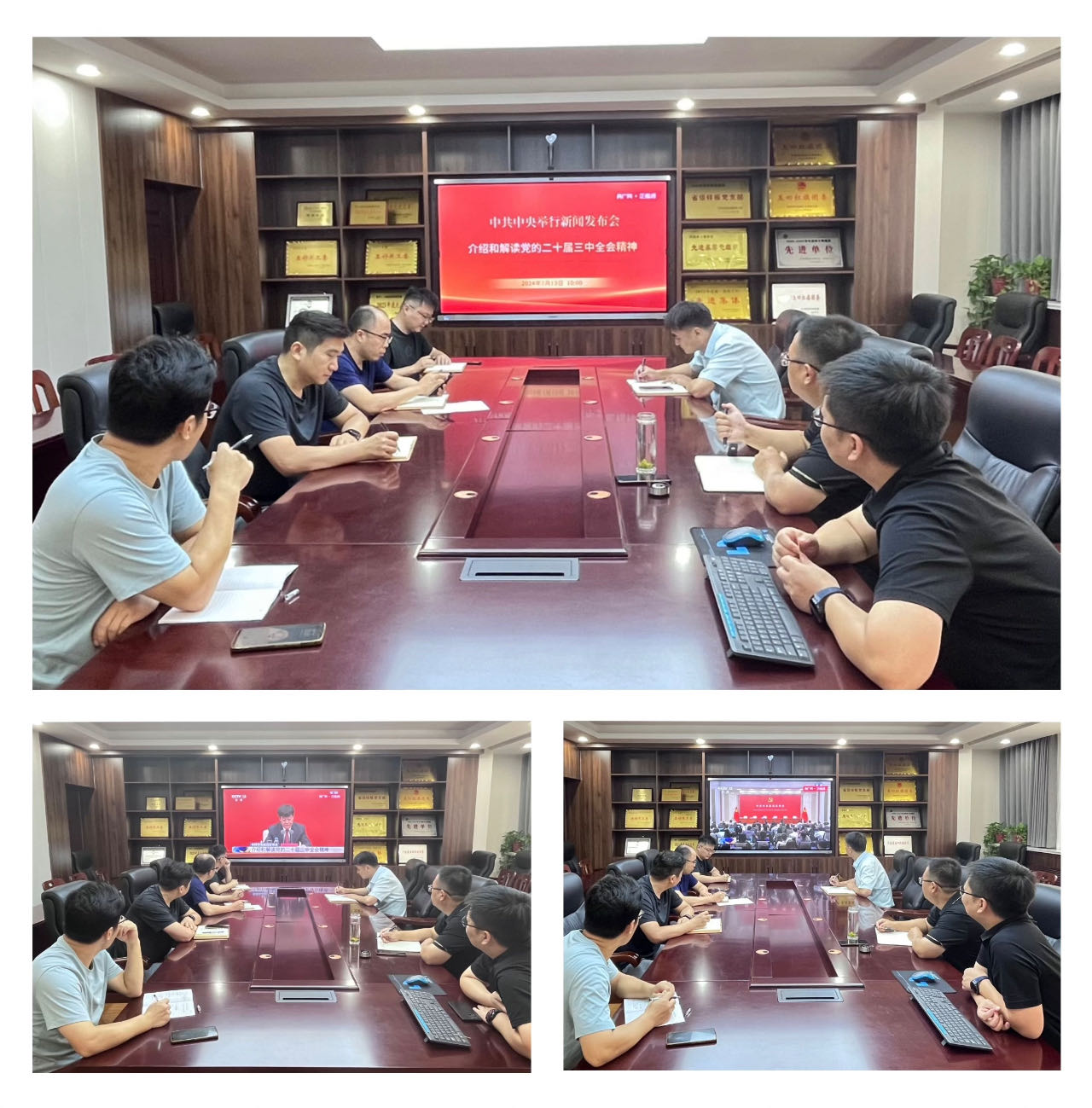 与会人员全程收看了中共中央介绍和解读党的二十届三中全会精神新闻发布会,聆听了中央政策研究室副主任唐方裕,全国政协副主席、中央改革办分管日常工作的副主任穆虹,中央财办分管日常工作的副主任、中央农办主任韩文秀,教育部党组书记、部长怀进鹏等专家对党的二十届三中全会精神的介绍和解读。随后,全体成员认真学习了《中国共产党第二十届中央委员会第三次全体会议公报》和习近平总书记在和平共处五项原则发表70周年纪念大会上的讲话精神。