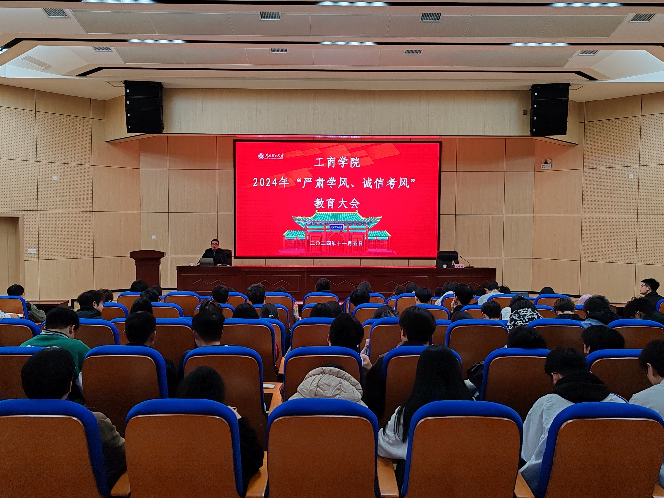 为了营造良好的学习氛围,提高学生的诚信意识,加强学风建设,培养德才兼备的学生,11月5日下午,yL23411永利官网登录在尚为报告厅召开“严肃学风、诚信考风”主题教育大会。本次大会由学院党委副书记赵伟利进行主讲,永利官网各班班委参加大会。