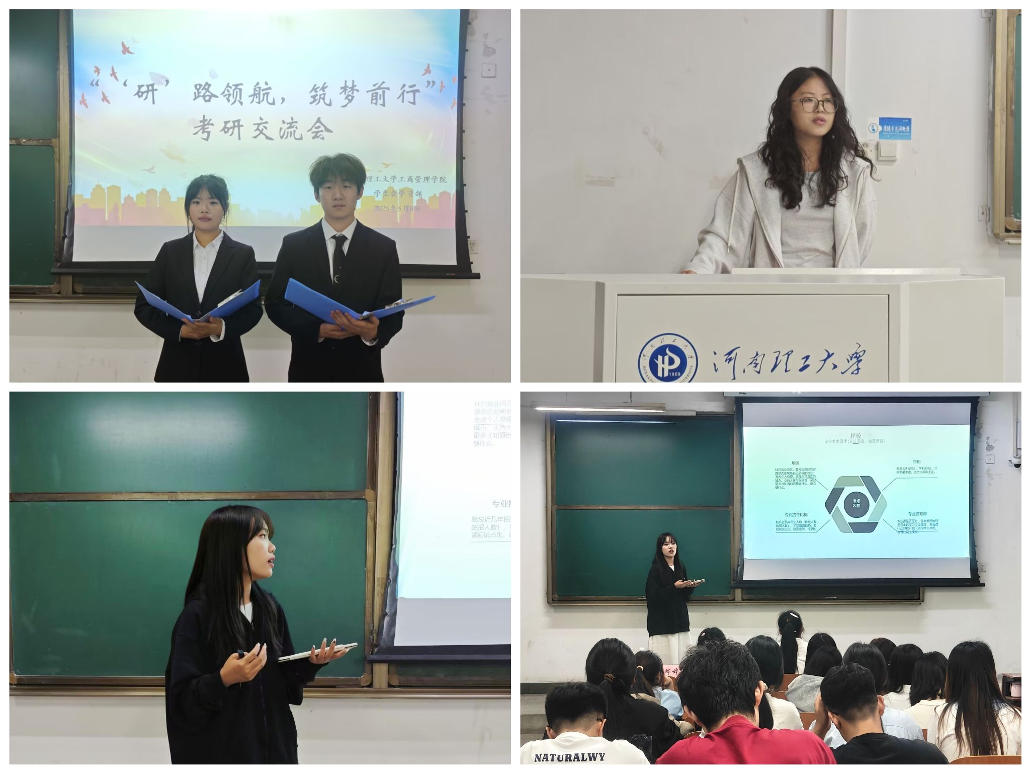 为激发同学们考研热情,帮助备考学生科学规划考研路径,提升备考动力,5月8日晚,永利官网学生会学习部在经管楼1104教室举办了“‘研’路领航,筑梦前行”考研交流会。本次交流会由四位成功拟录取于北京科技大学、西安电子科技大学、北京邮电大学和南京财经大学的优秀同学——陈烨、刘宁宇、高双双和郑烨婷,来到现场,分享她们的考研历程和宝贵经验,学习部工作者孟东琴和李炅航担任主持人,永利官网22、23级备考学生参加。