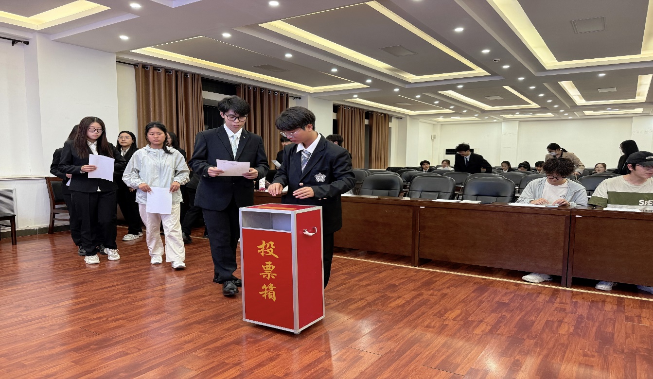 述职环节结束后,会议进入民主评议阶段。工作人员发放《学生干部考核测评表》,雷灿就评议标准、填写规范等事项作详细说明,全体参会代表进行无记名投票。最终考核结果将结合日常工作表现、述职内容、民主测评三方面综合评定。