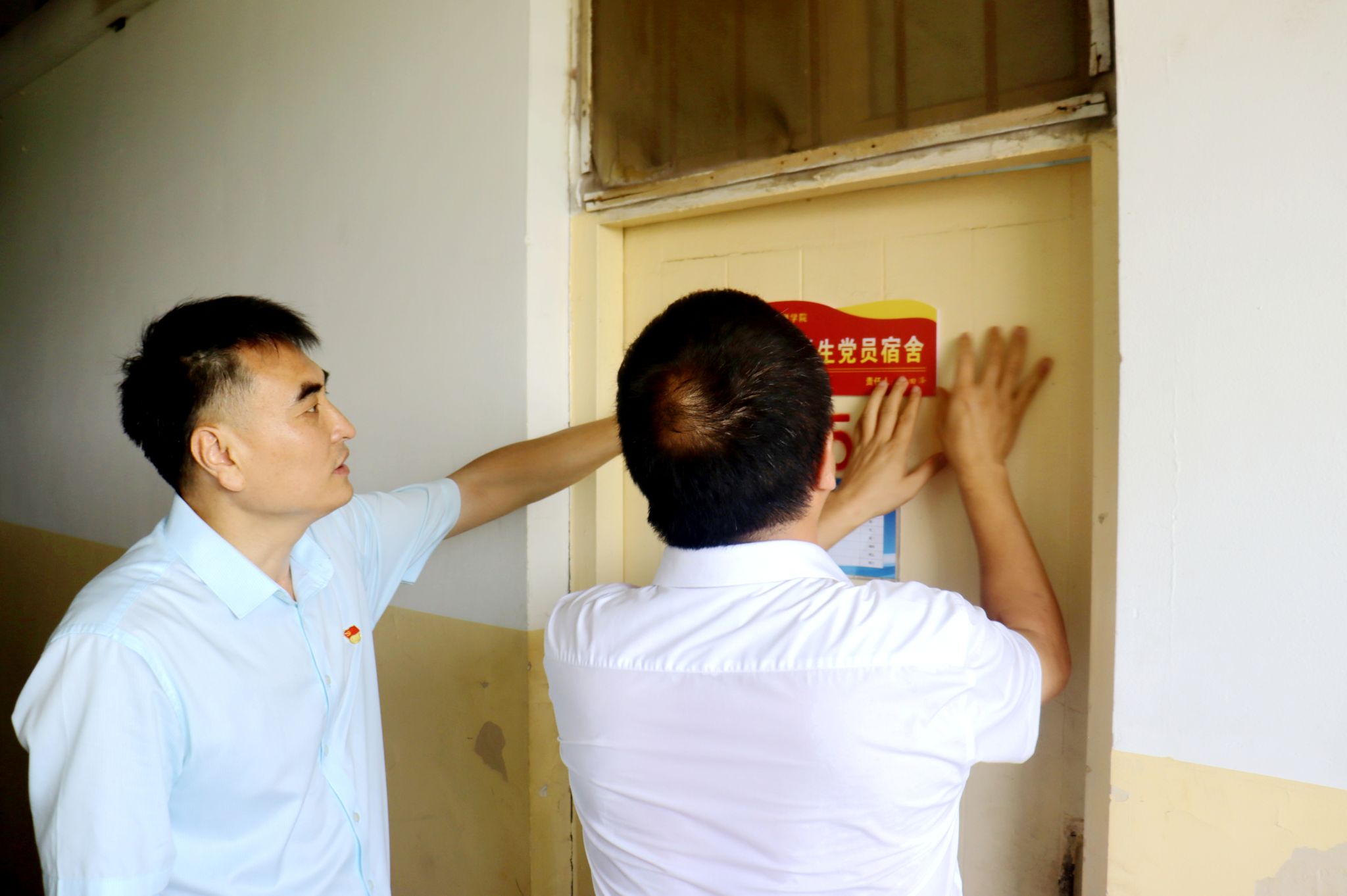 宣誓活动结束后,院领导与党员们共同前往学生宿舍,将 “党员宿舍” 的牌子郑重挂起,亮明党员身份,接受师生监督。